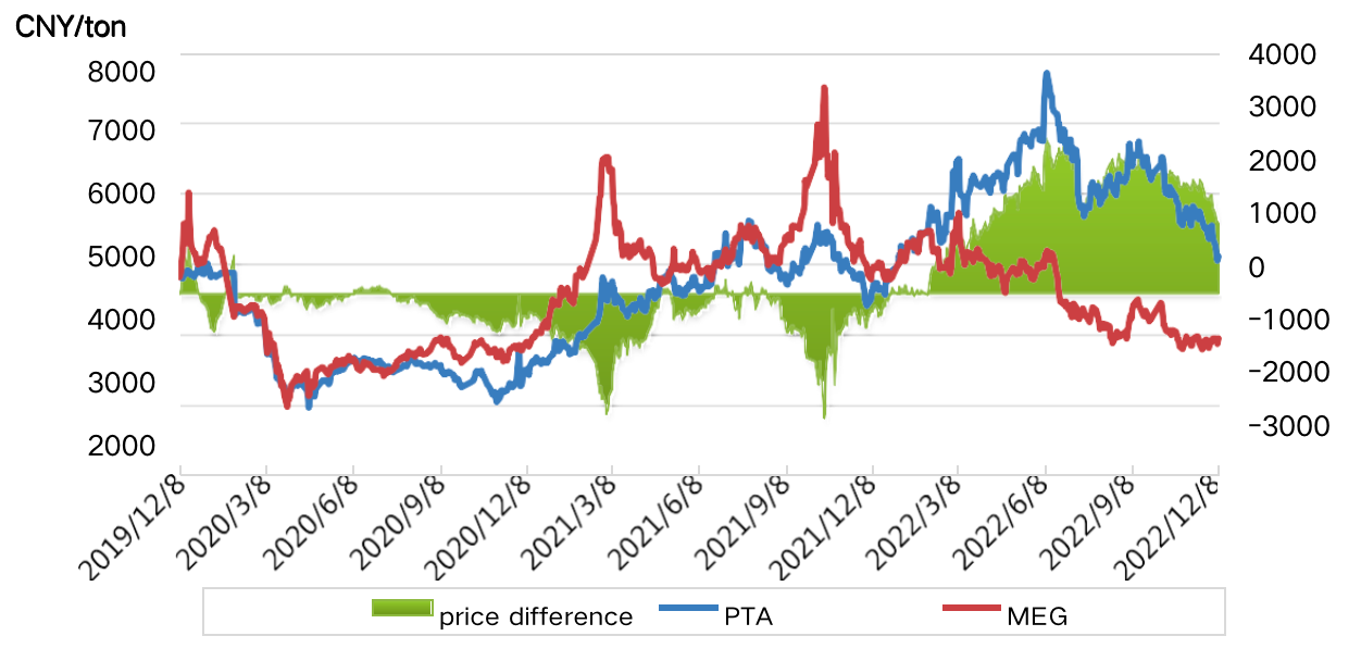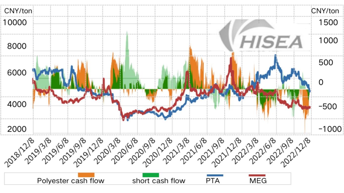 本周期(20221202-1208)期间,涤纶市场整体涨跌互现,市场价格走势涨跌互现 市场交易。凌乱。从上游来看,在此期间,市场权衡预期 欧佩克 + 减产策略和全球本土疫情对需求的拖累。虽然 欧佩克+坚持 减产推动美国商业原油库存继续下降,市场担心美联储可能仍会大举加息。成品油库存大幅增长,叠加市场对全球经济衰退的担忧情绪不减,欧美原油在此期间大幅下跌,聚合成本端相对不利。从直接原料来看,截至 十二月 8、 的市场价格 PTA 下降到 5,095 元/吨 .